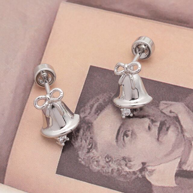 M16339 バーベルピアス リボンとベル 半面 鈴 鐘 ステンレス製 メッキ加工 デザインピアス 約7×8mm( 1ペア)