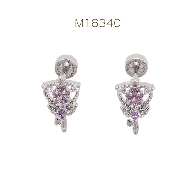 M16340 バーベルピアス 魔法のステッキ 杖 ステンレス製 メッキ加工 デザインピアス 約7×11mm( 1ペア)