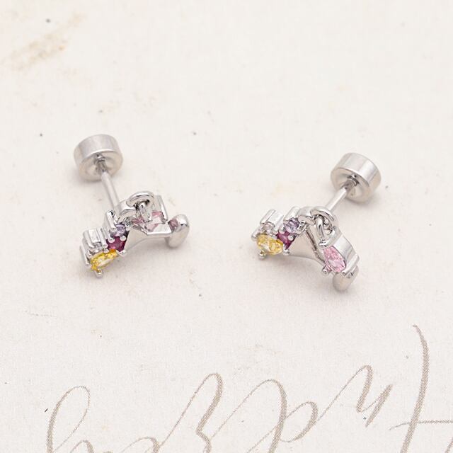 M16341 バーベルピアス カクテル グラス カラフル ストーン付き ステンレス製 メッキ加工 デザインピアス 約9×10mm( 1ペア)