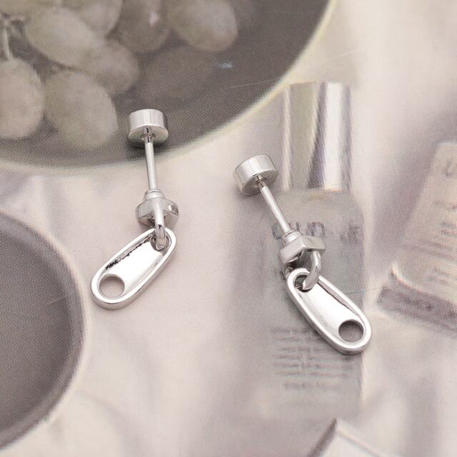 M16342 バーベルピアス ジッパーモチーフ ファスナー ステンレス製 メッキ加工 デザインピアス 約4×10mm( 1ペア)