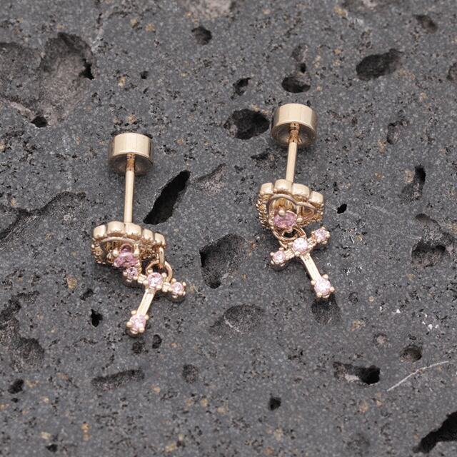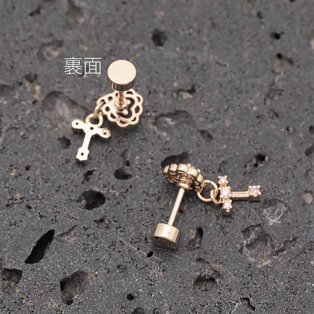 M16346 バーベルピアス ハート&クロス 十字架 ステンレス製 メッキ加工 デザインピアス 約6×7mm( 1ペア)