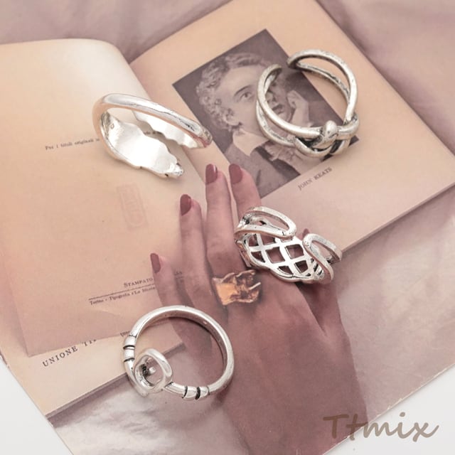 TR727 デザインリング 不規則 ワイド 幅広 ヴィンテージ風 アンティークシルバー メタルリング オープンリング 全4種(1個)