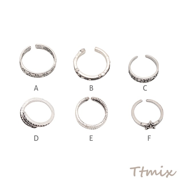 TR728 デザインリング 細身 バリエーション豊富 ヴィンテージ風 アンティークシルバー メタルリング オープンリング 全6種(1個)