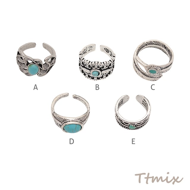 TR735 デザインリング エスニック風 ヴィンテージ風 アンティークシルバー メタルリング オープンリング 全5種(1個)