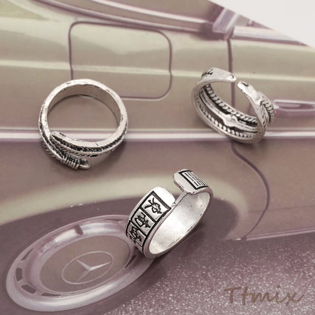 TR736 デザインリング フェザー 幾何学模様 ヴィンテージ風 アンティークシルバー メタルリング オープンリング 全6種(1個)
