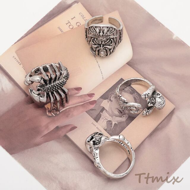 TR741 デザインリング 存在感◎ボリュームリング ヴィンテージ風 アンティークシルバー メタルリング オープンリング 全4種(1個)