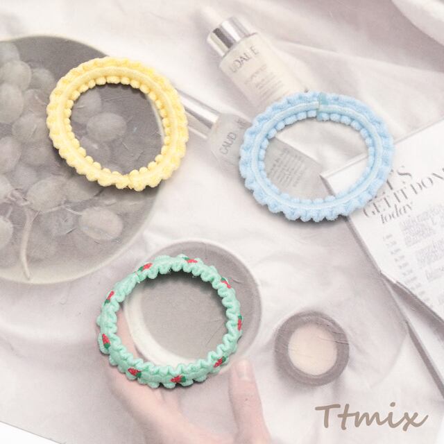 TH1535 ヘアゴム いちご 苺 フリル ミックスカラー カラーランダム 髪飾り 髪留め ヘアゴム ヘアアクセサリー(20ヶ)