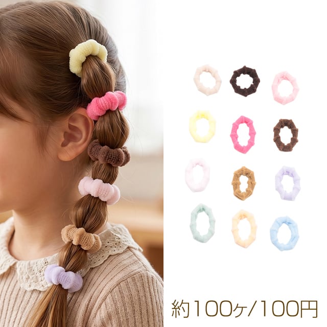 TH1537 ヘアゴム お徳用 フラワーモチーフ ミックスカラー カラーランダム 髪飾り 髪留め ヘアゴム ヘアアクセサリー(約100ヶ)