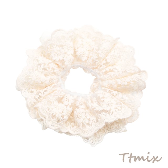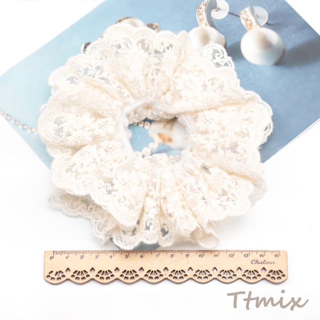 TH1538 シュシュ オフホワイト 透け感 レース フラワーモチーフ 髪飾り 髪留め ヘアゴム ヘアアクセサリー(1ヶ)