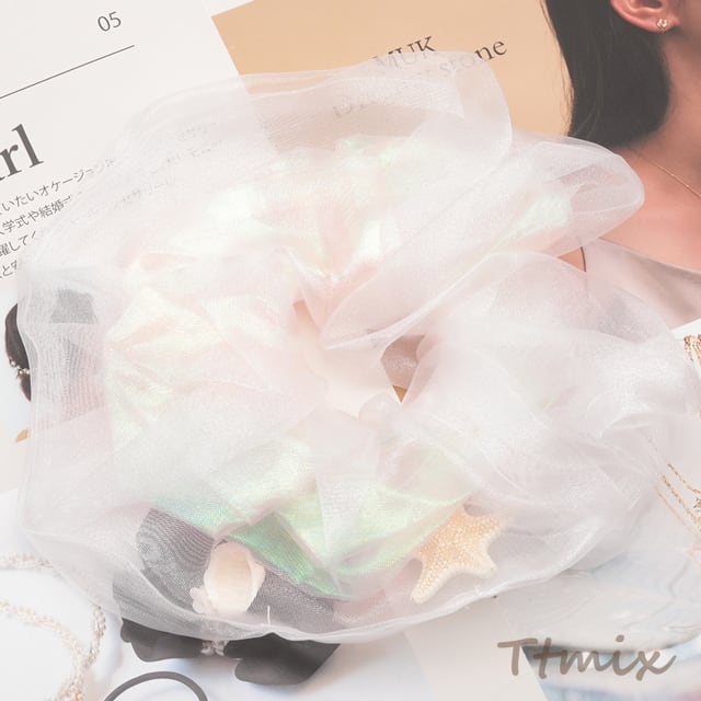 TH1545 シュシュ マリンモチーフ ふんわりオーロラ風 チュールシュシュ 髪飾り 髪留め ヘアゴム ヘアアクセサリー(1ヶ)