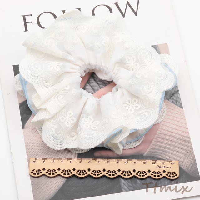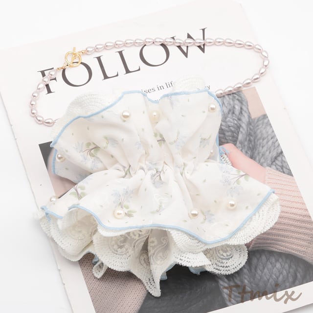 TH1550 シュシュ 花柄 2層レース フラワーモチーフ パール付き 髪飾り 髪留め ヘアゴム ヘアアクセサリー(1ヶ)