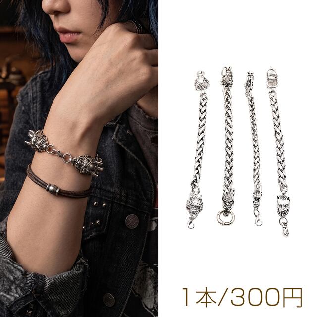 TN452 ブレスレット ヴィンテージ風 ドラゴン 龍 ワイルド アンティーク調 メタルチェーンブレスレット 4種(1本)