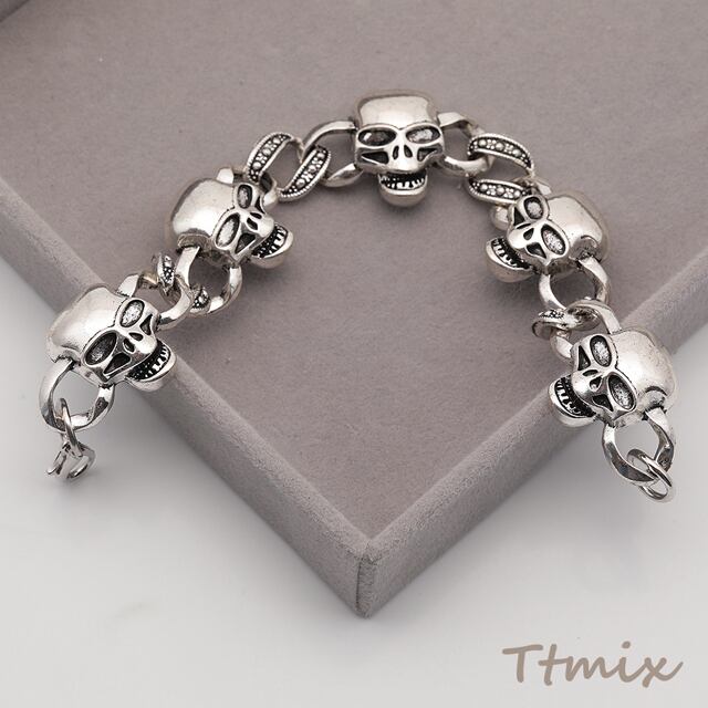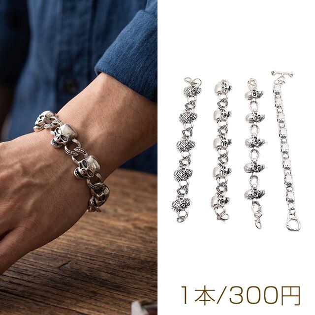 TN453 ブレスレット ヴィンテージ風 骸骨モチーフ スカル アンティーク調 メタルチェーンブレスレット 4種(1本)