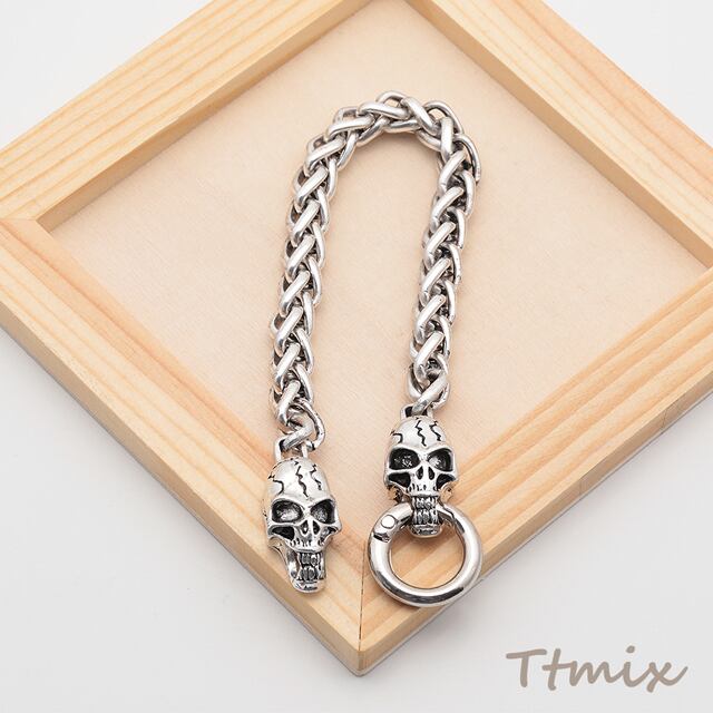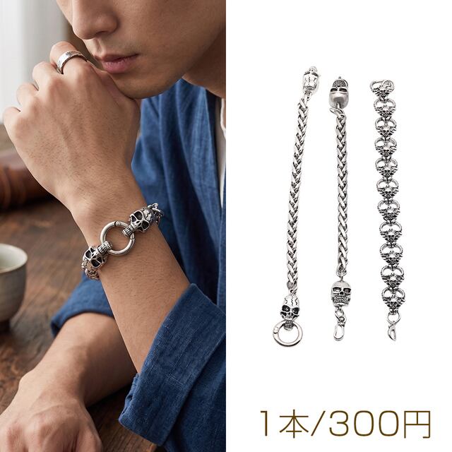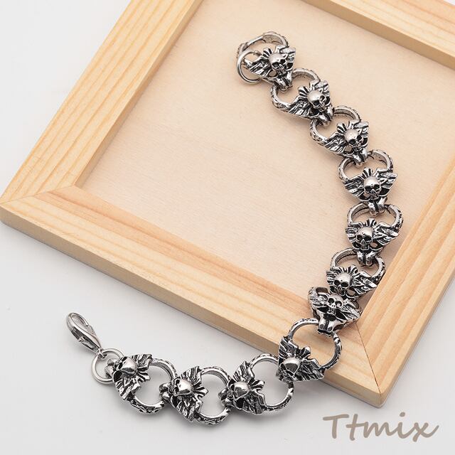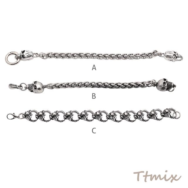TN454 ブレスレット ヴィンテージ風 骸骨モチーフ スカル アンティーク調 メタルチェーンブレスレット 3種(1本)