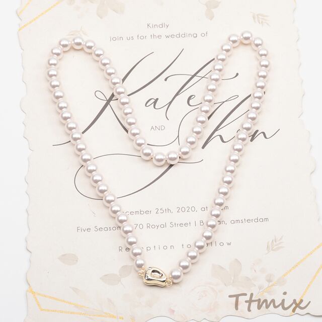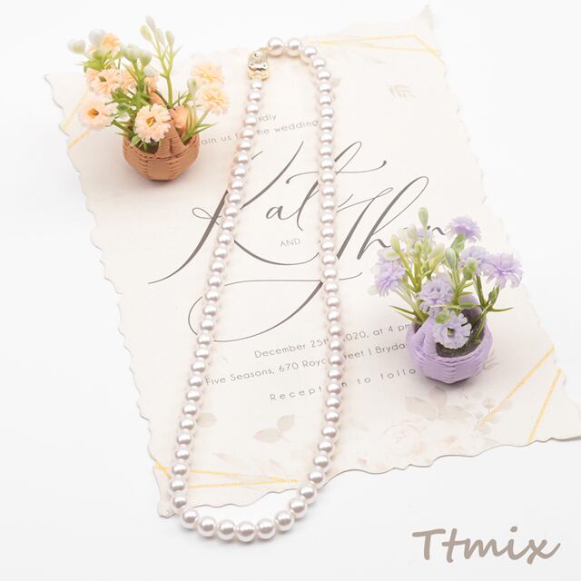 TN460 パールネックレス 高品質フェイクパール 丸玉 ガラスパール シンプル 長さ約44cm 6mm(1本)
