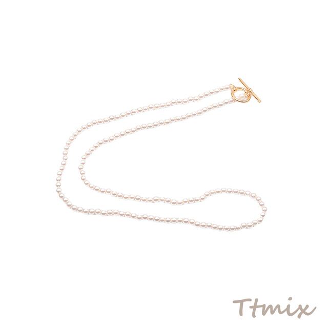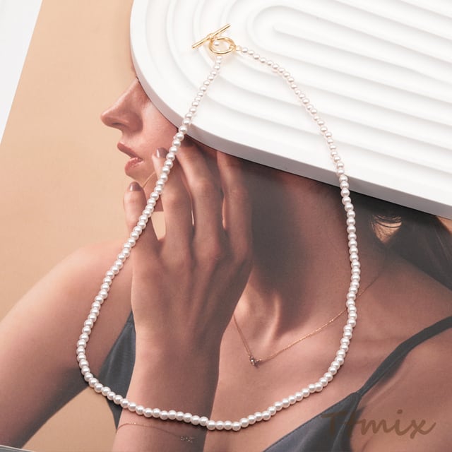 TN461 パールネックレス 高品質フェイクパール 丸玉 ガラスパール シンプル マンテル付き 長さ約42.5cm 3mm(1本)
