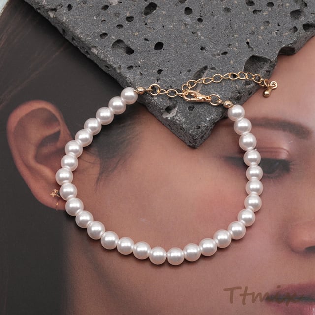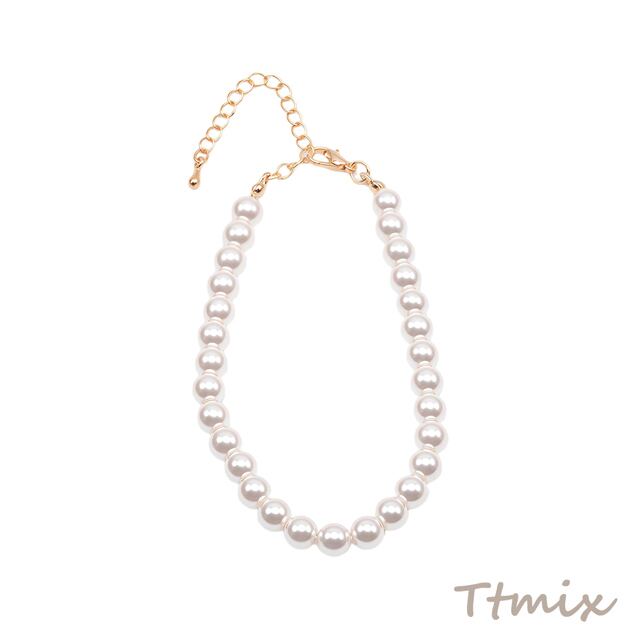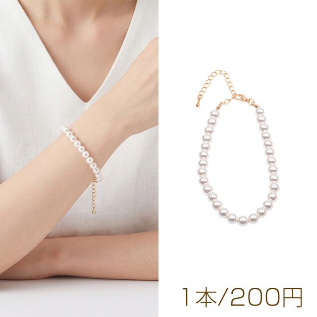 TN462 ブレスレット 高品質フェイクパール 丸玉 ガラスパール シンプル アジャスター付き 長さ約19+7cm 6mm(1本)