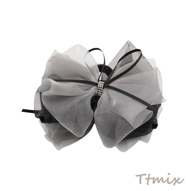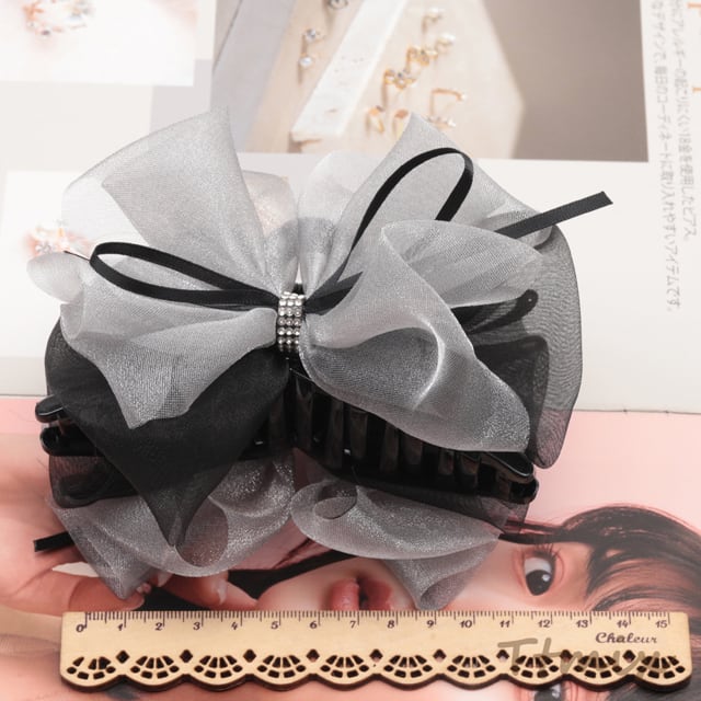 TH1557 バンスクリップ チュールリボン ラインストーン付き 髪飾り 髪留め ヘアゴム ヘアアクセサリー 約12cm(1ヶ)