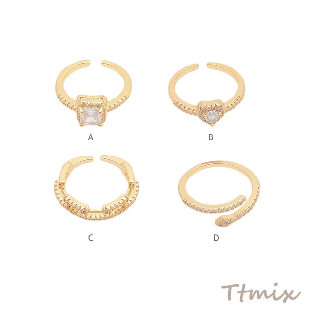 TR747 デザインリング ストーン/ラインストーン ゴールド 指輪 メタルリング オープンリング 全4種(1個)