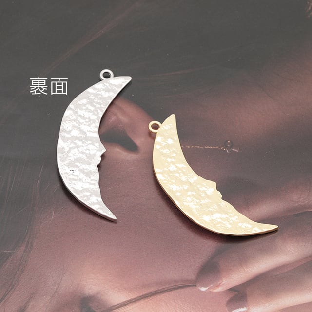 M16370 月チャーム 三日月 ラインストーン付き 表面凹凸加工 宇宙チャーム メタルチャーム 約14×49mm(2ヶ)