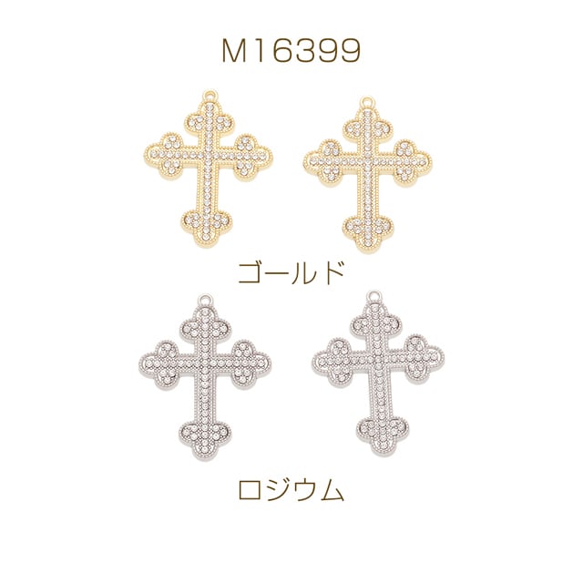 M16399 クロスチャーム 十字架 ラインストーン カン付き メタルチャーム 約26×35mm(2ヶ)
