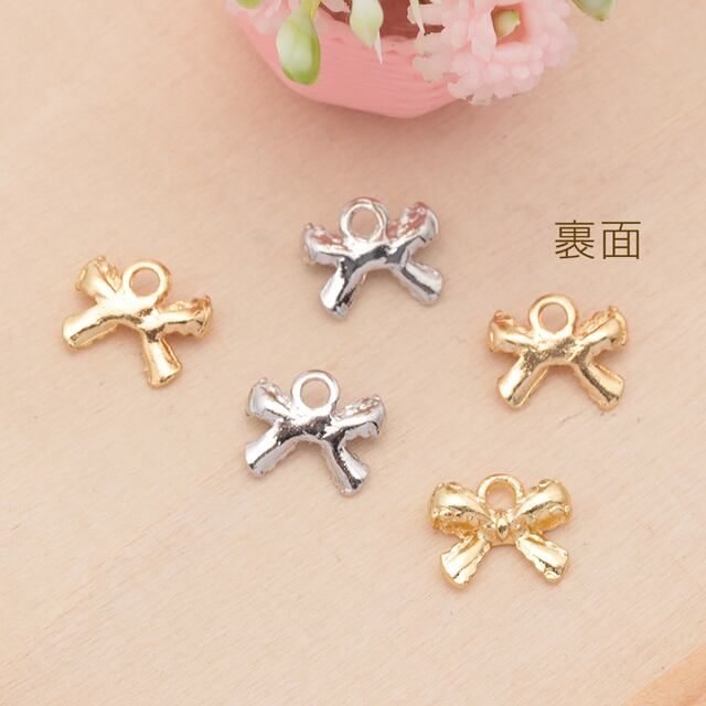 M16387 リボンチャーム ミニリボン 蝶々結び メタルチャーム 約9×10mm(4ヶ)