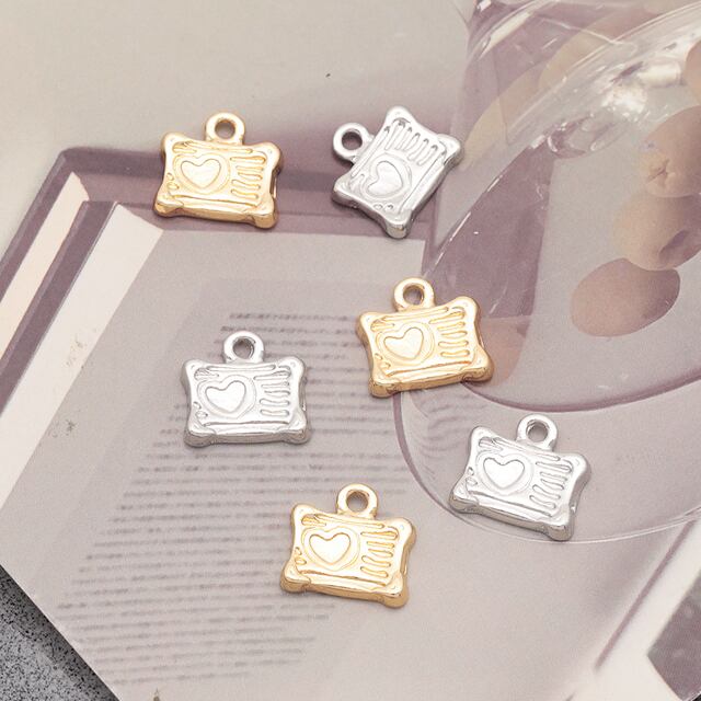 M16393 レターチャーム ハート模様 手紙 封筒 ミニチュア メタルチャーム 約11×12mm(4ヶ)