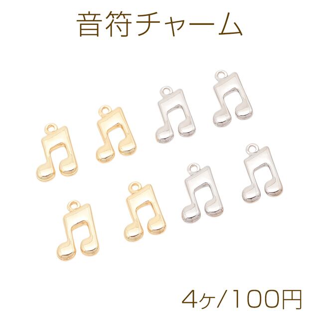M16395 音符チャーム 音楽 メロディ 楽譜 メタルチャーム 約11×17mm(4ヶ)
