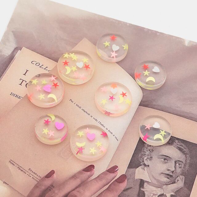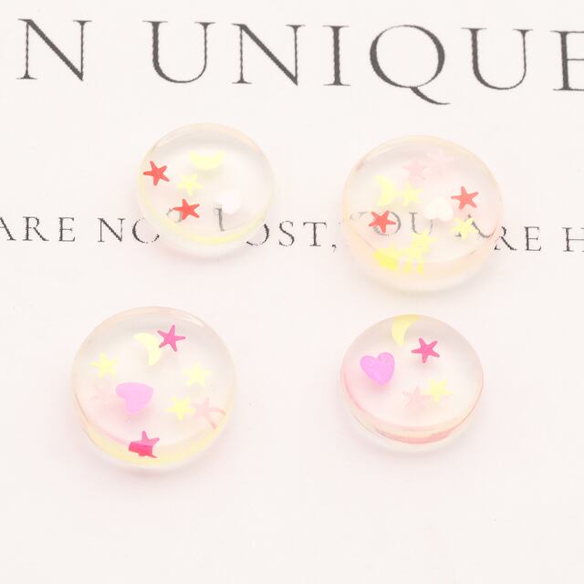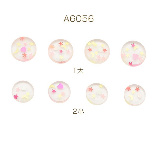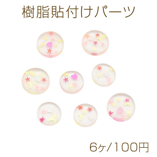 樹脂貼付けパーツ 丸型 ラウンド デコパーツ デコレーションパーツ 全2種(6ヶ)