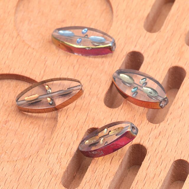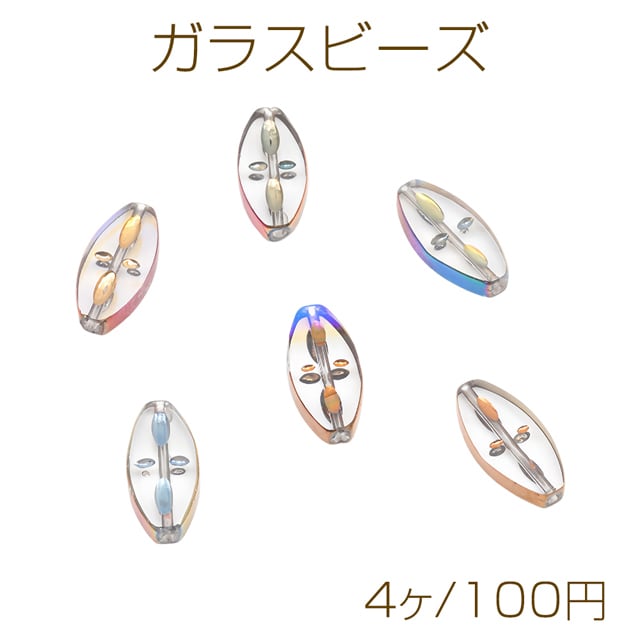 B1689 ガラスビーズ コイン型 ライス型 オーバル クリア オーロラメッキの縁 研磨加工 フラットビーズ 約10×20mm(4ヶ)