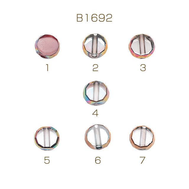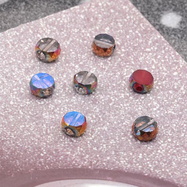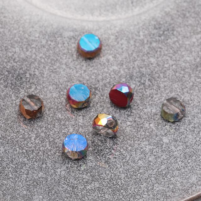 B1692 ガラスビーズ コイン型 レッド/クリア オーロラメッキの縁 研磨加工 フラットビーズ 約6mm(10ヶ)