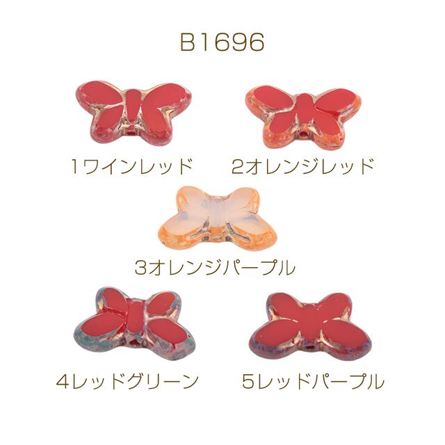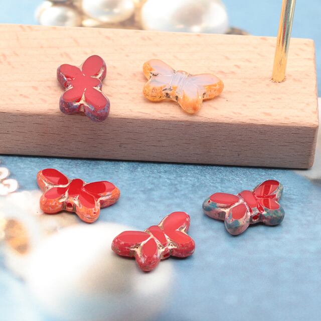 B1696 ガラスビーズ チェコ調 蝶々 バタフライ ピカソ風カラーの縁 研磨加工 フラットビーズ 約11×19mm(4ヶ)