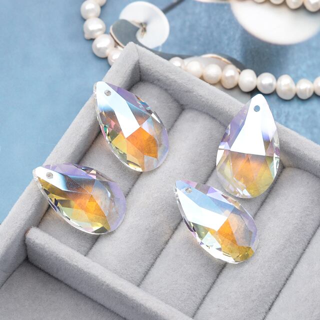 B1698 ガラスチャーム しずく型 キラキラ クリスタル 穴あり 立体 ドロップチャーム ガラスパーツ 約17×28mm(1ヶ)