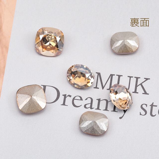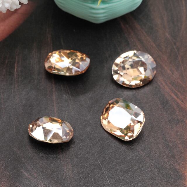 B1705 ガラスストーン シャンパンカラー キラキラ 穴なし 立体 Vカット ビジュー 貼り付け ガラスパーツ 全3種(4ヶ)