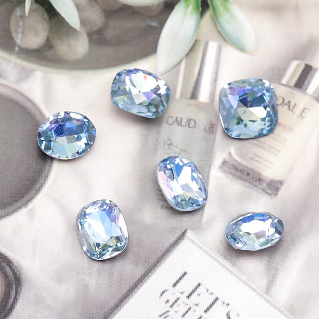 B1708 ガラスストーン ブルーカラー キラキラ 穴なし 立体 Vカット ビジュー 貼り付け ガラスパーツ 全3種(2ヶ)