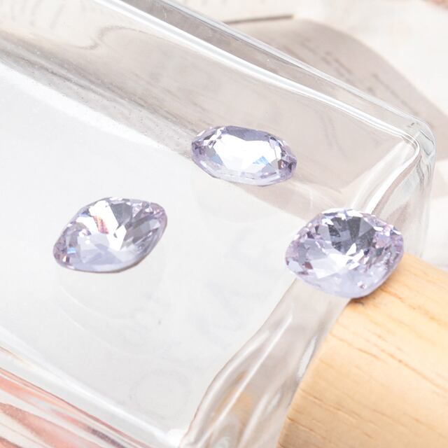 B1709 ガラスストーン ラベンダーカラー キラキラ 穴なし 立体 Vカット ビジュー 貼り付け ガラスパーツ 全3種(2ヶ)