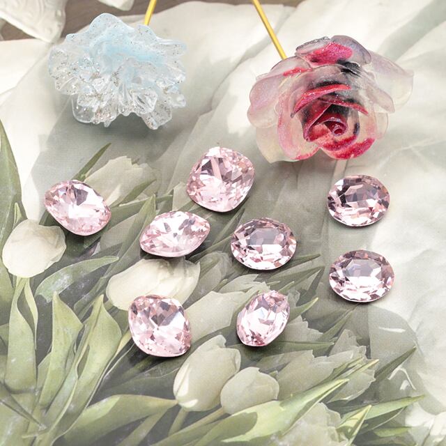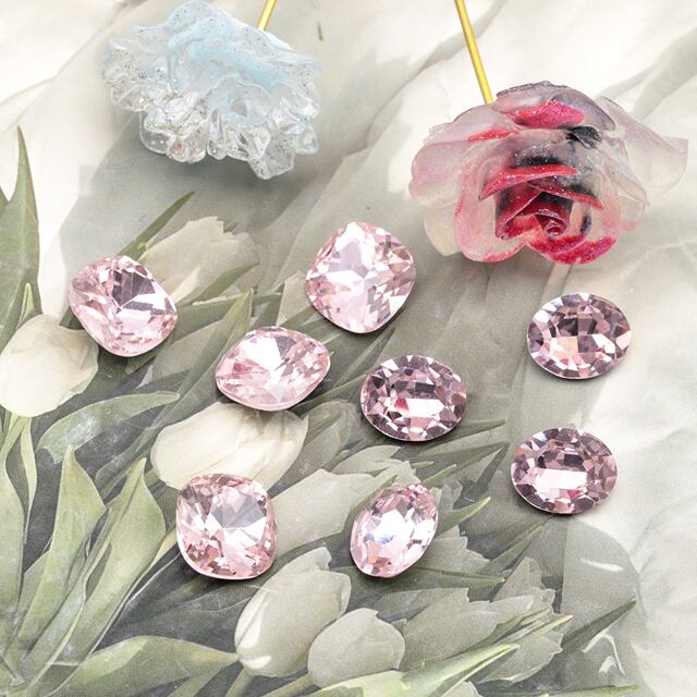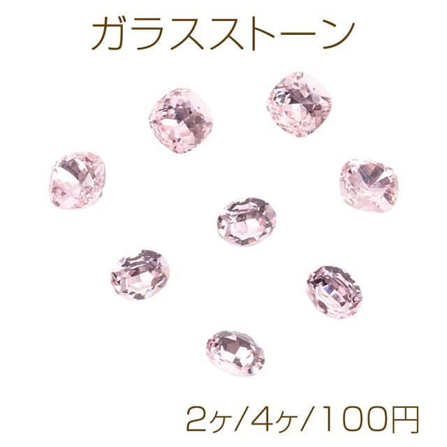 B1710 ガラスストーン ピンクカラー キラキラ 穴なし 立体 Vカット ビジュー 貼り付け ガラスパーツ 全2種(2ヶ/4ヶ)