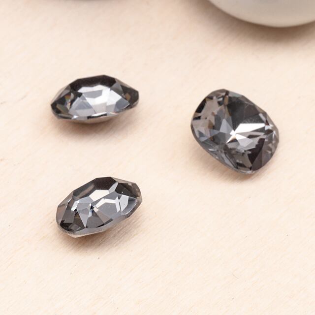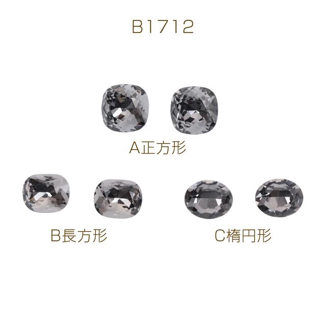 B1712 ガラスストーン グレーカラー キラキラ 穴なし 立体 Vカット ビジュー 貼り付け ガラスパーツ 全3種(4ヶ)