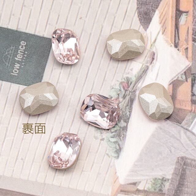 B1714 ガラスストーン ピンク 長方形 キラキラ 穴なし 立体 Vカット ビジュー 貼り付け ガラスパーツ 約8×10mm(2ヶ)