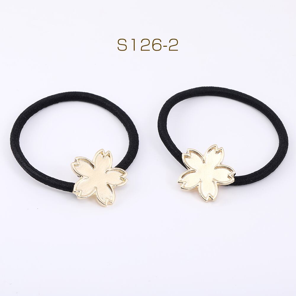 S126-2 ヘアゴム セディング土台付き 桜 23×23mm ゴールド/ブラック(2ヶ) | Beads&parts BASE2号店