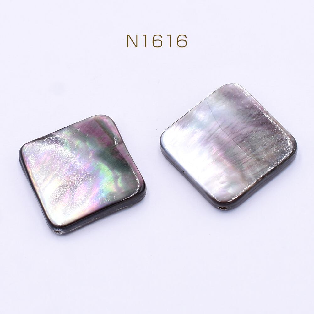 N1616 黒蝶貝ビーズ 菱形 25.5×25.5mm【2ヶ】