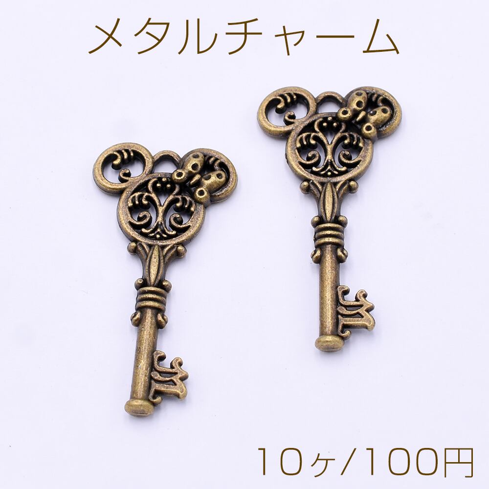 M6077 メタルチャーム キー 鍵 1カン 23×46mm 真鍮古美【10ヶ】
