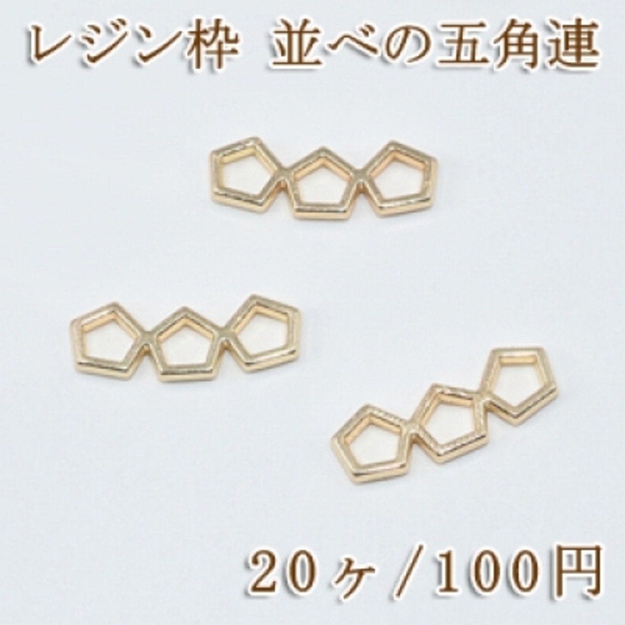 M803 レジン枠 チャーム並べの五角連【20ヶ】ゴールド | Beads&parts BASE2号店