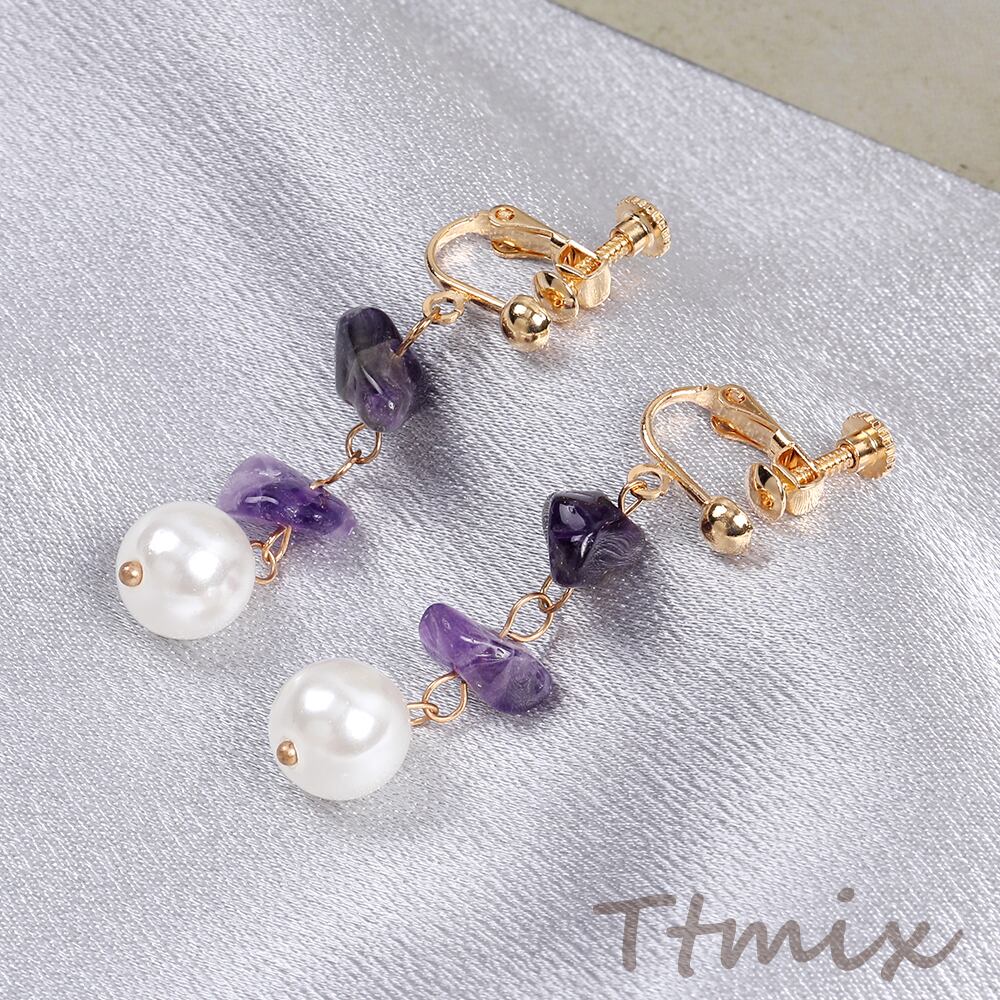 TE439 デザインイヤリング パール&天然石イヤリング ゴールド(1ペア)
