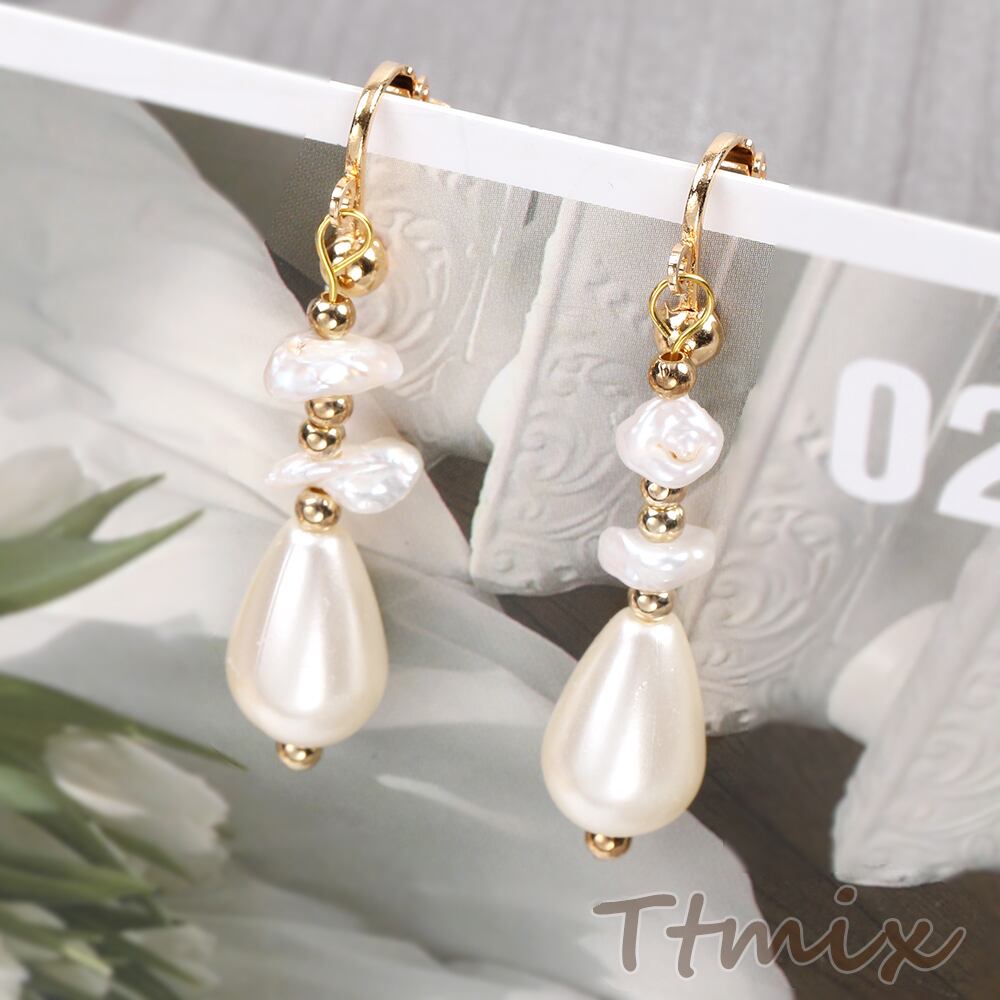 TE440 デザインイヤリング しずく型パールイヤリング ゴールド(1ペア)