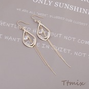 TE682 フックピアス ジルコニア付き しずく型 チェーンタッセル 18×100mm ゴールド(1ペア)