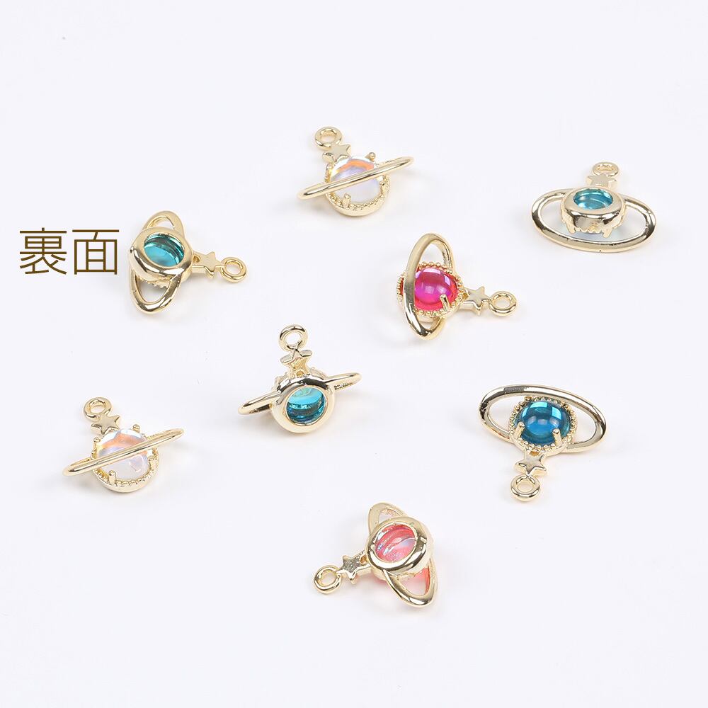 M10177 ガラスストーンの土星チャーム カン付き 14×14mm ゴールド(1ヶ) | Beads&parts BASE2号店