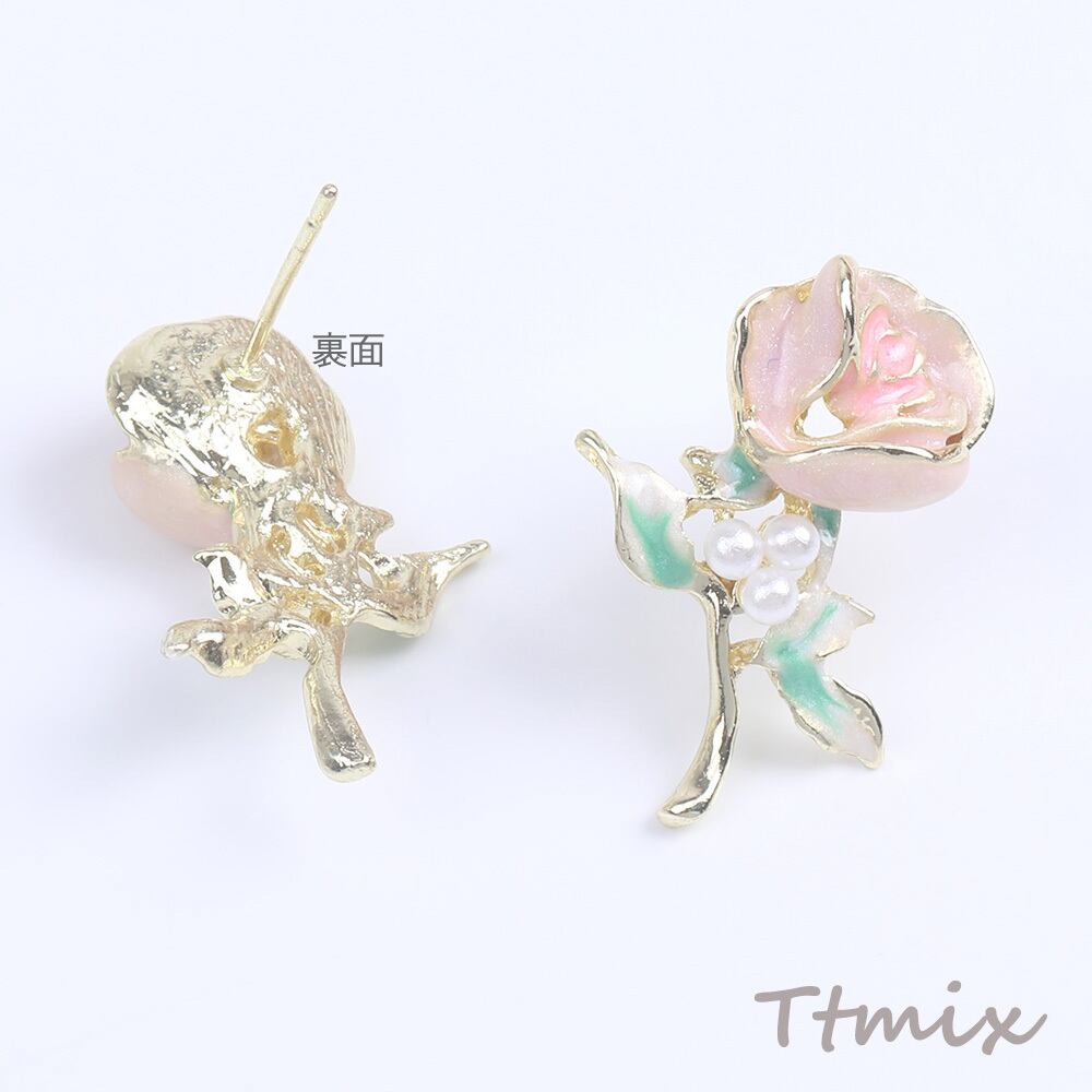 TE722 デザインピアス 一輪花のピアス ゴールド ピンク(1ペア)