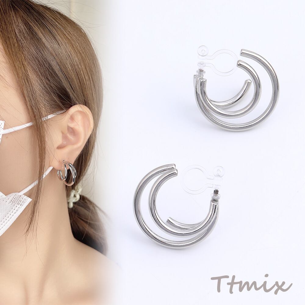 TE786 樹脂ノンホールピアス フープ ロジウム(1ペア) | Beads&parts BASE2号店