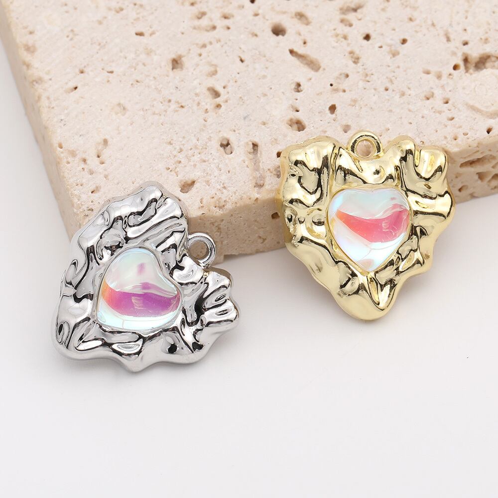 M10324 メタルハートチャーム 樹脂ハートチャーム オーロラカラー 18×19mm(4ヶ) | Beads&parts BASE2号店